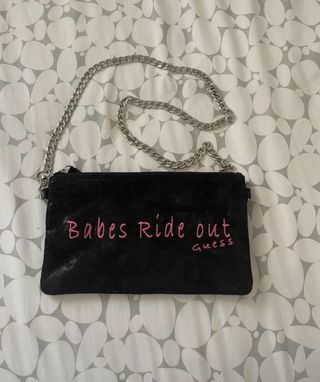 Elegante bolso Guess con un diseño clásico y sofisticado. - Acabado en relieve con el logo de la marca. - Dos asas cómodas para llevar al hombro. - Detalle de charm colgante con el logo y nombre de la marca. - Tiene 2 zonas desgastadas (foto 4 ) - En el interior una mancha azul (foto3).
