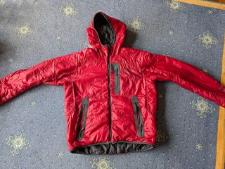 Vendo chaqueta Helly Hansen de Primaloft, modelo Odin con capucha. Es de color rojo, haciendo aguas de rojo más claro. Tiene 2 bolsillos laterales y 1 frontal. De pecho mide 56cm y sobre los 60cm de largo. Le hice un agujero con la mochila en el frente y una costurera profesional le cosió la etiqueta interna para disimularlo. La chaqueta esta usada, pero le queda mucha vida por delante.