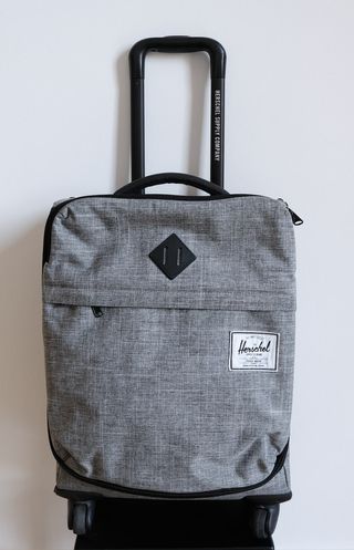 Preciosa maleta de viaje Herschel, en color negro. Está en buen estado. - Asa de mano resistente. - Ruedas integradas para facilitar el transporte. - Compartimento principal espacioso.