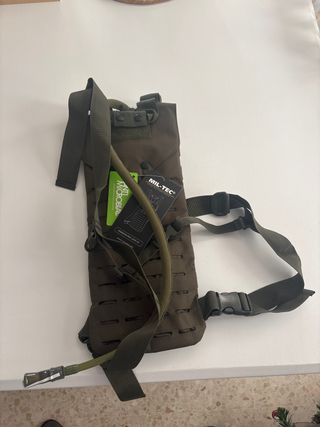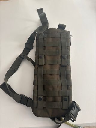 Mochila táctica de hidratación, también conocida como camelbak. - Color verde. - Color marrón.