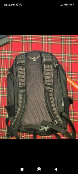 Osprey Daylite Plus original en negro y gris, poco usada. Ideal para senderismo, viajes o uso diario. Amplio compartimento principal, funda interna acolchada para portátil (hasta 15") o bolsa de hidratación, y bolsillos laterales de malla para botellas de agua. El panel trasero AirScape ofrece comodidad y ventilación, cosa que me ha ido bastante bien. Está en buen estado general con signos de uso normales.