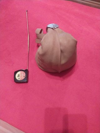 Mochila o bolso de serraje.Tamaño pequeño-mediano.No se ha usado nunca, pero necesita hidratación, de ahí su precio.