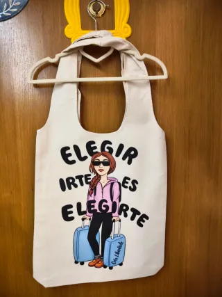 Bolsa con un diseño único de la marca Anekke. - Asas de cuerda. - Estampado con una niña y flores.