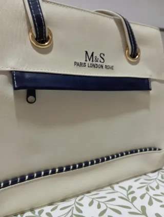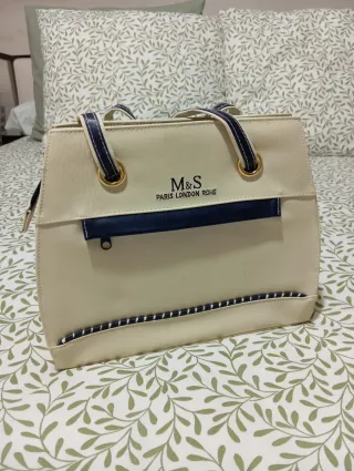 Bolso M&S beige y azul de hombro