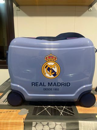 - Maleta con el escudo del Real Madrid, ideal para los más pequeños. - Diseño inspirado en el equipo. - Maleta correpasillos de 41 cm x 34 cm x 20 cm. Tiene una capacidad de 25 L y pesa 1,8 kg. Fabricada en ABS, un material rígido y ligero Gomas elásticas a ambos lados para mantener el equipaje organizado y cierre de combinación lateral para aumentar la seguridad Cuatro ruedas y bandolera ajustable con mosquetones para facilitar el transporte Múltiples formas de llevarlo: tirando de ella tipo trolley, al hombro o montándose encima De Joumma Bags. - Utilizada una sola vez .