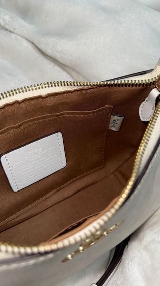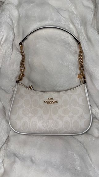 bolso duplic@ de Coach - Patrón de monograma en relieve. - Ribete blanco. - Asa de cadena dorada. - tiene una pequeña mancha Está en perfecto estado