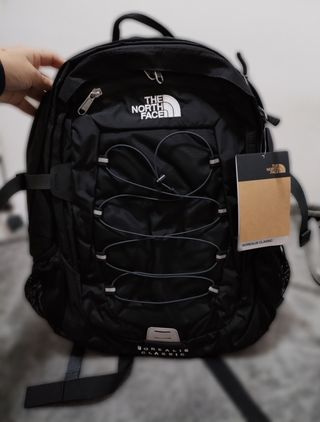 Mochila The North Face en color negro. Modelo Borealis Classic. - Compartimento principal espacioso. - Bolsillos laterales de malla. - Cuerdas elásticas frontales para sujeción. - Asa superior. - Correas de hombro acolchadas y ajustables.