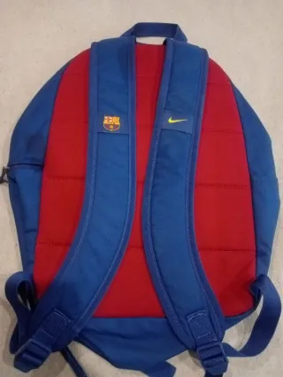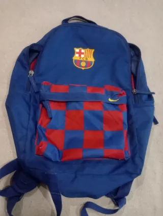Mochila del FC Barcelona con el logo de Nike. Diseño a cuadros en rojo y azul. - Compartimento principal con cremallera. - Bolsillo frontal con cremallera. - Correas ajustables para los hombros.