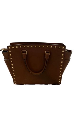 Elegante bolso de mano Michael Kors en color marrón. Un accesorio con un diseño moderno y detalles que marcan la diferencia. - Adornado con tachuelas doradas. - Asas de mano. - Bolsillos exteriores.