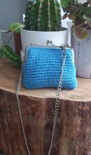 Monedero crochet pequeño, con cadena plateada