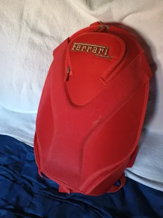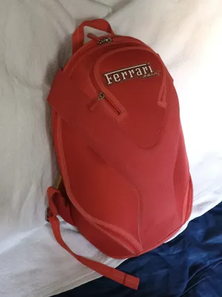 Mochila semirrígida de la marca Ferrari Gear en color rojo con bandas amarillas. Diseño moderno y funcional. - Compartimento principal con cierre de doble cremallera reforzado con tiras de velcro. - Bolsillo frontal adicional. - Correas ajustables para los hombros. - Asa superior para llevar en mano. - Gran capacidad de carga, se abre por completo. Más cositas en mi perfil, hago descuento si compras varias cosas. A recoger en Móstoles, cerca de la estación de Metro Hospital de Móstoles.