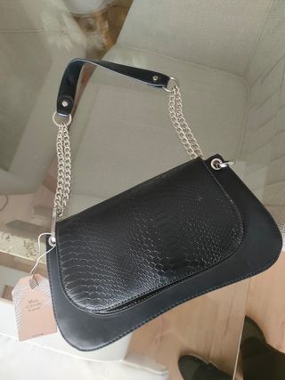 El bolso es de una tienda de accesorios que se llama Susana Bix,pongo accesorize porque sino no me deja subirlo. Elegante bolso con un diseño moderno y práctico. - Asa de mano y correa de hombro ajustable. - Combinación de texturas y colores. - Detalle metálico frontal.