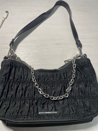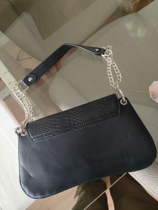 Un bolso de hombro o de mano negro con cadena colgando (NO HAGO ENVÍOS)