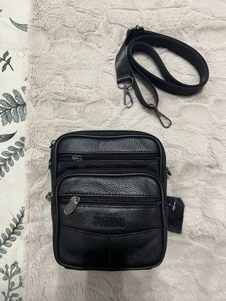 Bolso pequeño de hombre, ideal para llevar lo esencial. - Material: Piel. - Cierre con cremallera. - Correa ajustable.