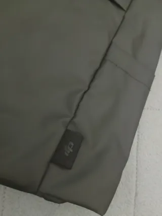 Mochila DJI en color preto, con un diseño moderno y funcional. - Compartimento principal con cierre enrollable. - Bolsillo frontal con cremallera. - Asas superiores y correa para hombro. - Pequeño logo en la parte inferior derecha.
