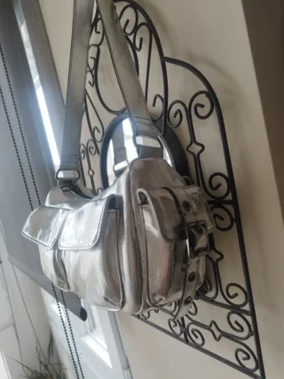 Bolso de hombro plateado