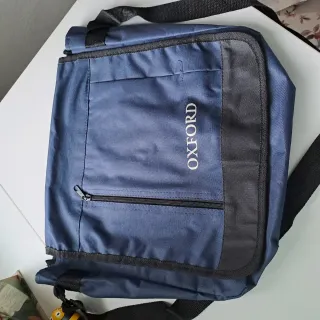 Mochila de la marca Oxford con un diseño moderno y práctico. - Color azul principal con detalles en negro. - Compartimento frontal con cremallera. - Correa ajustable para el hombro.