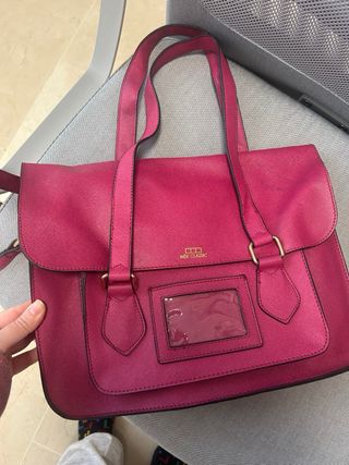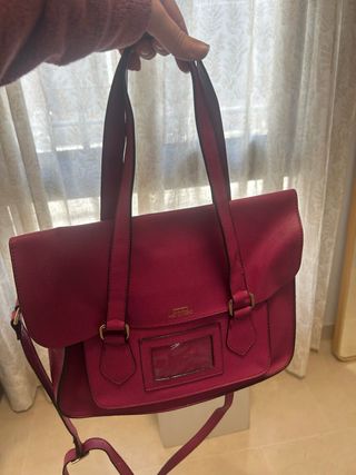 Bolso de mano y bandolera de estilo Oxford (doble asa) en muy buen estado - Color rosa vibrante. - Cierre con solapa e imán. - Compartimento transparente en la parte frontal. - Asa de mano y correa ajustable para llevar al hombro