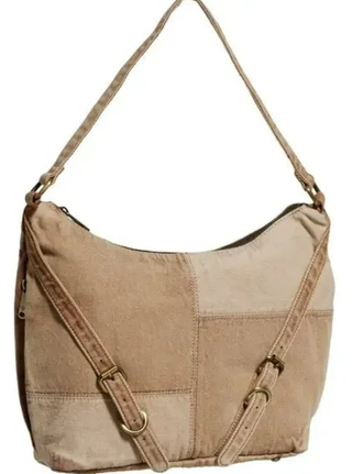 Bolso de hombro con diseño patchwork en tonos beige. Práctico y con estilo. - Cierre de cremallera. - Correas ajustables.