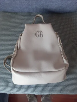 Bolso tipo mochila en color crudo con las iniciales GR grabadas. - Diseño moderno y versátil. - Cierre de cremallera. - Asas ajustables. Precio negociable. Ofertas serias