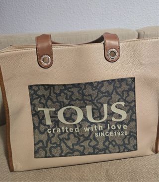 Bolso Tous modelo Amaya en tonos beige y marrón. Un accesorio elegante y práctico. - Diseño con estampado de osos característico de la marca. - Detalle de crafted with love SINCE 1920 en la parte frontal. - Asas de cuero marrón. - Compartimento principal con cierre. - Con certificado de autenticidad de la tienda. - en perfecto estado