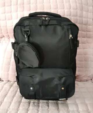 Mochila de tamaño cabina, ideal para viajes. - Compartimento principal espacioso. - Bolsillo frontal con cremallera. - Correas de hombro acolchadas.
