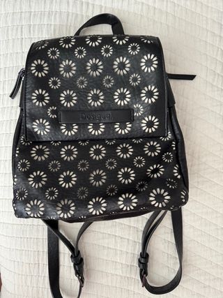Mochila práctica y moderna. Bolsillos interiores en perfecto estado pero tiene un asa descosida que se puede arreglar. Se puede ver en fotos - Compartimento principal espacioso. - Bolsillo frontal con cremallera. - Correa ajustable para el hombro.