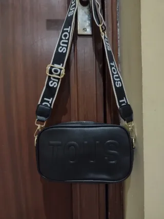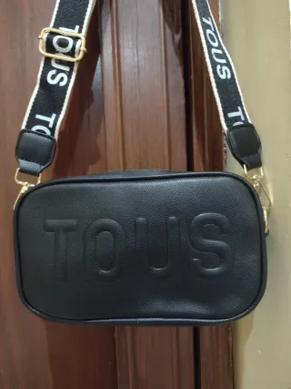 Bolso de la marca Tous en color negro. Presenta un diseño moderno y elegante, perfecto para complementar cualquier atuendo. - Correa ajustable con logo. - Detalle de logo en relieve en la parte frontal.