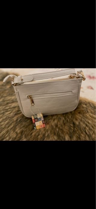 Bolso o bandolera. Nuevo, sin estrenar. Medidas: alto 20 cm, largo 27 cm, fondo 12 cm, largo del asa 32 cm y se alarga el doble. Lleva bolsillos en el interior. Hago envíos. En persona se entrega en la puerta del Domino's pizza de Avda Puente del Pilar.