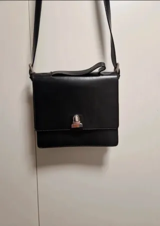 Bolso de mano elegante en color negro. - Diseño clásico y versátil. - Cierre metálico frontal. - Correa ajustable. Tiene una bolsa plastica que sale de una cremallera para mas espacio Tiene señales de uso pero en perfectas condiciones.