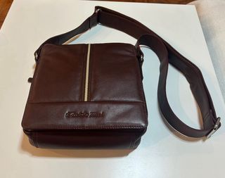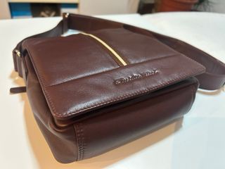 Bandolera de piel en color marrón de la marca Emidio Tucci. Un accesorio elegante y práctico. - Cierre con solapa. - Correa ajustable. - Detalle de tiras decorativas en la parte frontal. - Tres compartimentos interiores grandes, uno con cremallera, y otro compartimento pequeño. - Compartimento con cremallera exterior en la parte trasera.