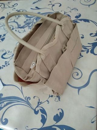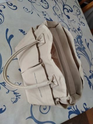 bolso de mano impermeable. color beige claro. nuevo. medidas..24 largo por 18 ancho. 3 bolsillos grandes. 2 interiores y 4 exteriores. nuevo. precio. 10€.