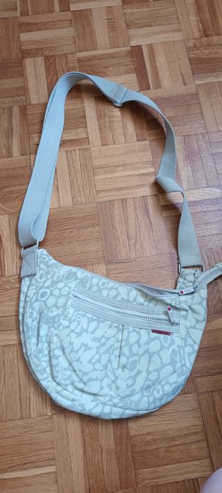 Bolso bandolera con correa ajustable en altura. Múltiples bolsillos. muy cómodo. Exterior tela, tipo impermable, se puede limpiar con un paño húmedo.