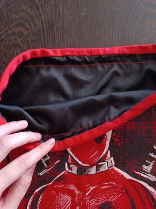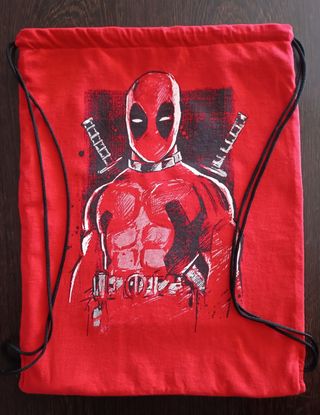 Mochila / bolsa de Deadpool / Masacre. Mochila única. Interior de plástico, impermeable. Bolsillo exterior con cierre de velcro. En persona 30€. En envío 28€.