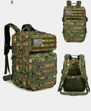 Mochila tactico militar 50L Mimetizado Incluye 2 parches de tela bordados medidas 50x30x30 cm gran capacidad espalda y corres acolchadas 2 bolsillos delanteros con cremallera + dos grandes compartimentos principales con bolsillo integrado con cremallera y bolsillo de malla + un bolsillo trasero oculto impermeable ideal para viajar crossfit senderismo trekking hacemos entrgas y envios