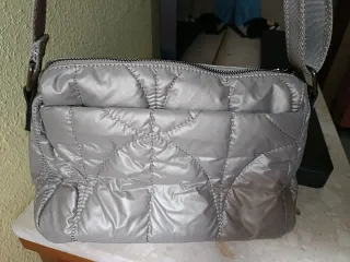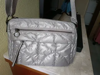 Bolso impermeable color gris plata. Sin usar. Ligero de peso y varios departamentos. Medidas: 30x18x12cm