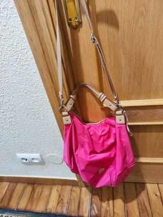 está en buenas condiciones ,color fucsia,tipo bolso deportivo.