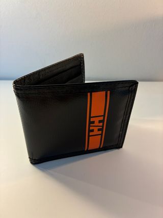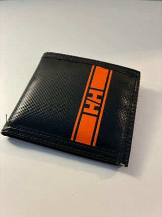 Cartera técnica Helly Hansen con un diseño moderno y funcional. - Material impermeable. - Detalles en color naranja. - Compartimentos interiores para tarjetas. - Monedero con cremallera. - En perfecto estado, sin estrenar.
