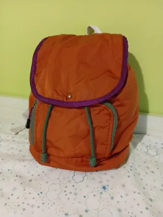 Mochila infantil de Zara. - Color naranja con detalles morados. - Cierre de cordón y solapa. - Bolsillo frontal con cremallera. - nueva sin etiquetas - 100% algodón. Envío inmediato NOO NEGOCIABLE