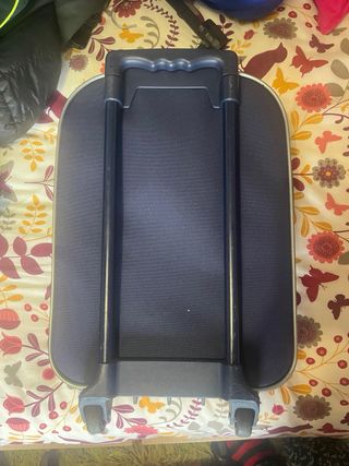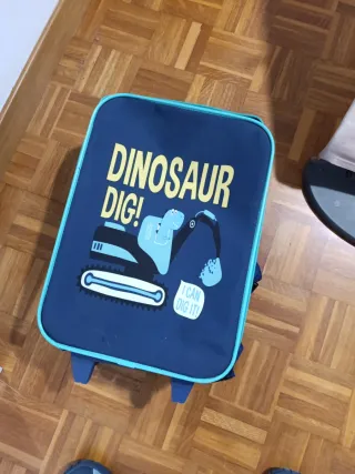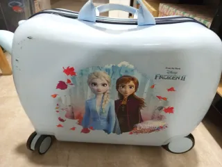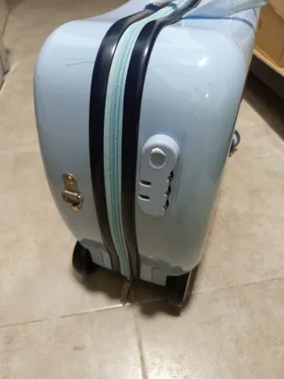 Maleta de cabina para niños con diseño divertido. - Ruedas - Asa de transporte superior. - cerradura con su llave - los mas pequenos pueden sentarse encima y usarla de vehiculo Tiene una pequeña mancha en la correa (ver foto) Dispongo de otra igual en color azul
