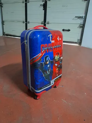 Maleta infantil con diseño de superhéroes de Marvel, inspirada en Civil War. - Personajes: Capitán América y Iron Man. - Diseño dividido en azul y rojo. - Ideal para viajes y escapadas. - con ruedas para moverla