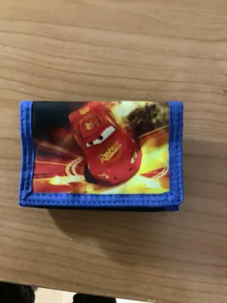 Cartera con diseño del personaje Rayo McQueen de Cars. - Estampado a todo color. - Ribete azul.