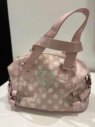 Bolso infantil con un diseño encantador de lunares. - Adornado con un aplique de corazón. - Asas cómodas para llevar. - Detalles plateados.