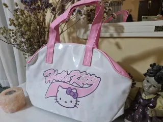 Macuto infantil con el diseño de Hello Kitty. Sin usar, conserva la etiqueta Se ha desteñido un poco el rosa como se puede apreciar en la primera poco, pero no se nota mucho - Color blanco y rosa. - Estampado de Hello Kitty.