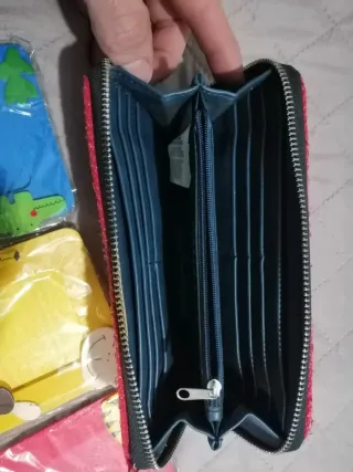 Carteira pa gardar ben cartos e tres portafotos infantiles.