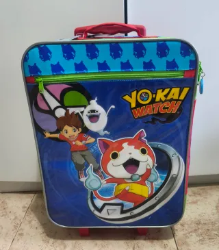 Maleta infantil con diseño de Yo-kai Watch. Nueva con etiqueta, con ruedas y asa extensible, alguna pequeña marca de haber estado guardada. Medidas en las últimas fotos. Urge venta por falta de espacio.