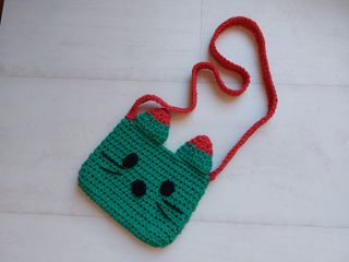 Bolso de crochet nuevo con diseño de gato en color verde y rojo, medidas 15,5x11cm, ideal para niños. Perfecto para llevar pequeños tesoros. Compleméntalo con algún otro articulo de mi perfil y ahorra en el envío con un lote! Puedes ver mi trabajo en instagram: @nuria_marine (PetiLo). #PetiLo #PetiLoCat #PetiLoLiquidacion