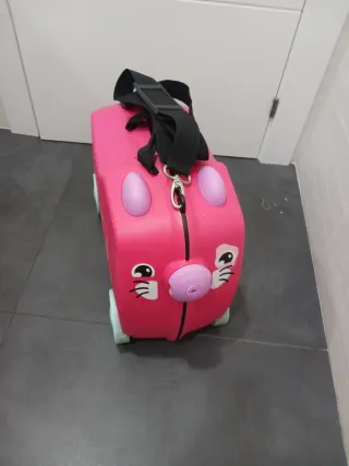 Maleta infantil con un divertido diseño. - Ruedas para facilitar el transporte. - Asa para llevarla. - Cierre de seguridad. Muy poco uso