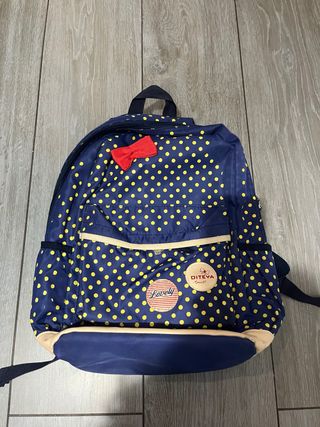 Mochila infantil azul con lunares amarillos