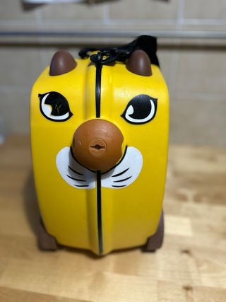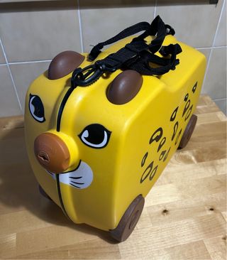 Maleta infantil de la marca Trunki, perfecta para los más pequeños. - Diseño divertido y práctico. - Ruedas resistentes para facilitar el transporte. - Asa para llevarla cómodamente.